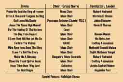 sung by a mass choir totalling 225, besides small groups doing a few songs.
